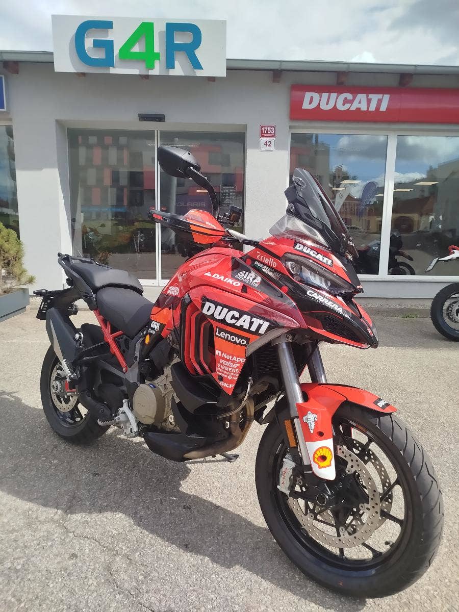 S novou Multistradou V4 pro rok 2025 Ducati dále zdokonaluje již tak vydařený etalon třídy velkých cestovních strojů: zvyšuje pohodlí jezdce a spolujezdce, zlepšuje jízdní efektivitu i při plném zatížení a zavádí nové elektronické systémy pro bezpečnější a výkonnější jízdu na každém povrchu vozovky.