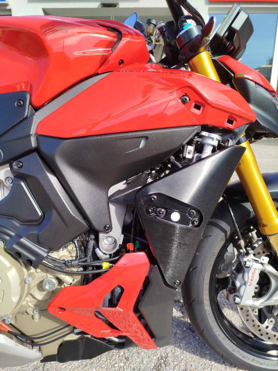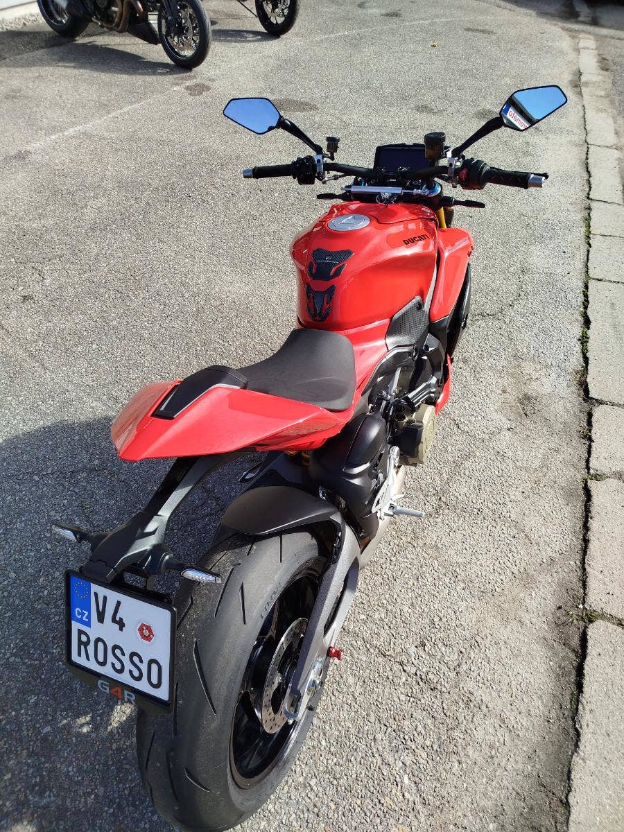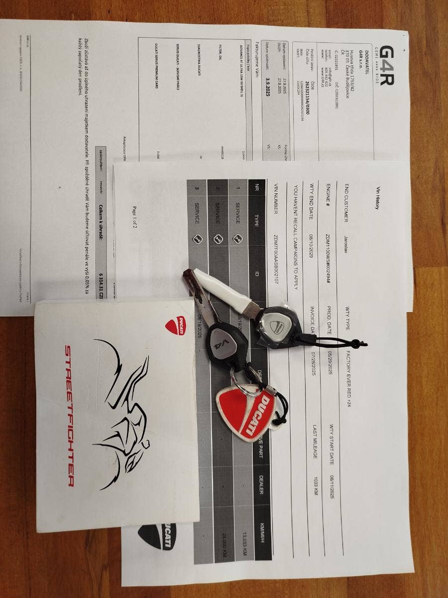 Nabízíme k prodeji letošní model Ducati Streetfighter V4S (verze s elektronickým podvozkem). Rok 2025, najeto pouze: 5 783 km. Motocykl zakoupen letos u nás jako nový tedy po prvním majiteli. Plná tovární záruky, 2x klíče, manuál, elektronický záznam ze servisu. Proveden 1. garanční servis samozřejmě u nás v autorizovaném prostředí, rádi doložíme. Nová zadní pneu, tankpad nádrže, mřížky chladiče. Motorka po lehkém pádu v minimální rychlosti viz foto jinak v krásném stavu. PC: 680 000, Kč nyní podzimní super cena.