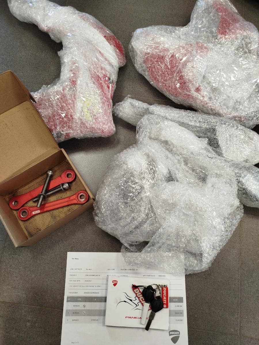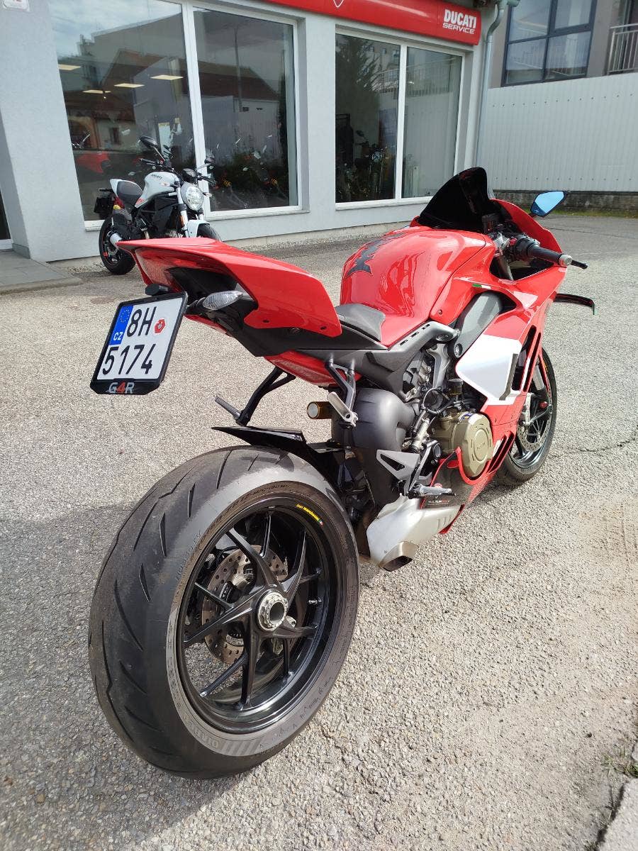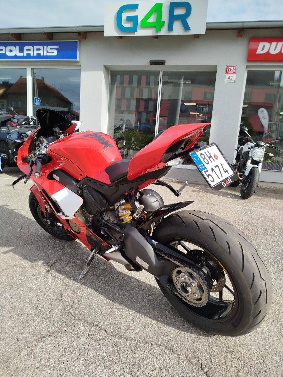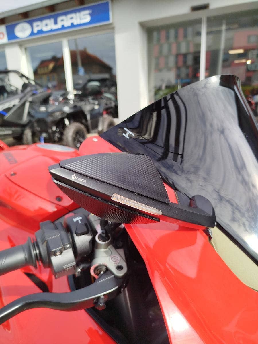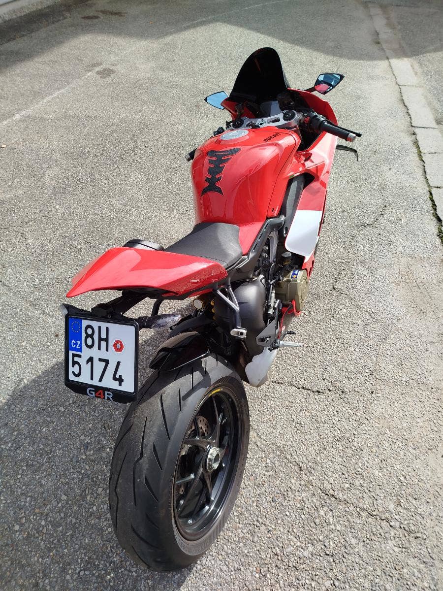 Nabízíme k prodeji moc hezkou Ducati Panigale V4 z roku: 2023 a nájezdem: 16 278 km. Motocykl zakoupen nový v autorizovaném dealerství Ducati v ČR. Nyní druhý majitel, 2x klíče, uživatelský manuál, elektronický výpis ze servisní knihy. Stále v tovární záruce. Pravidelný garanční servis pouze v autorizovaném dealerství Ducati. Nyní čerstvě po garančním servise rovněž u nás. Výměna oleje, olejového filtru, diagnostika, svolávací akce, celková kontrola. Nedlouho zpátky, svíčky, filtr, řetězová sada, výměna brzdové kapaliny, pneu. V nadstandardní výbavě: vyšší tmavé plexi, kratší držák SPZ, zpětná zrcátka DB Race včetně integrovaného blinkru, tankpad. Původní díly k moto. Možnost přikoupení snižovacího kitu. Krásná Panigale s jasným českým původem, prokazatelným servisem a zárukou.