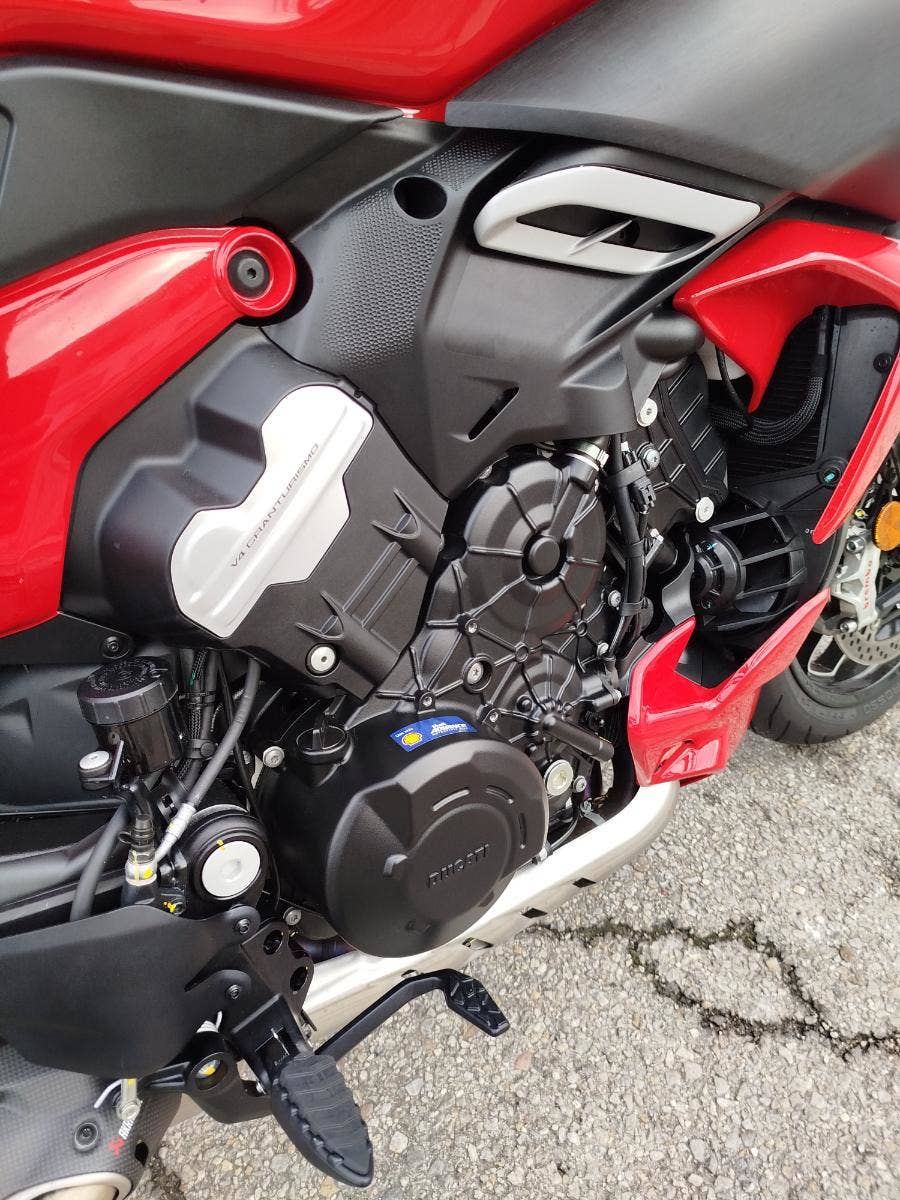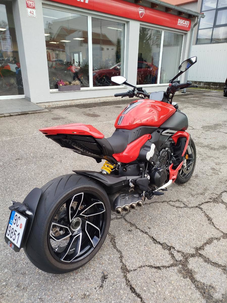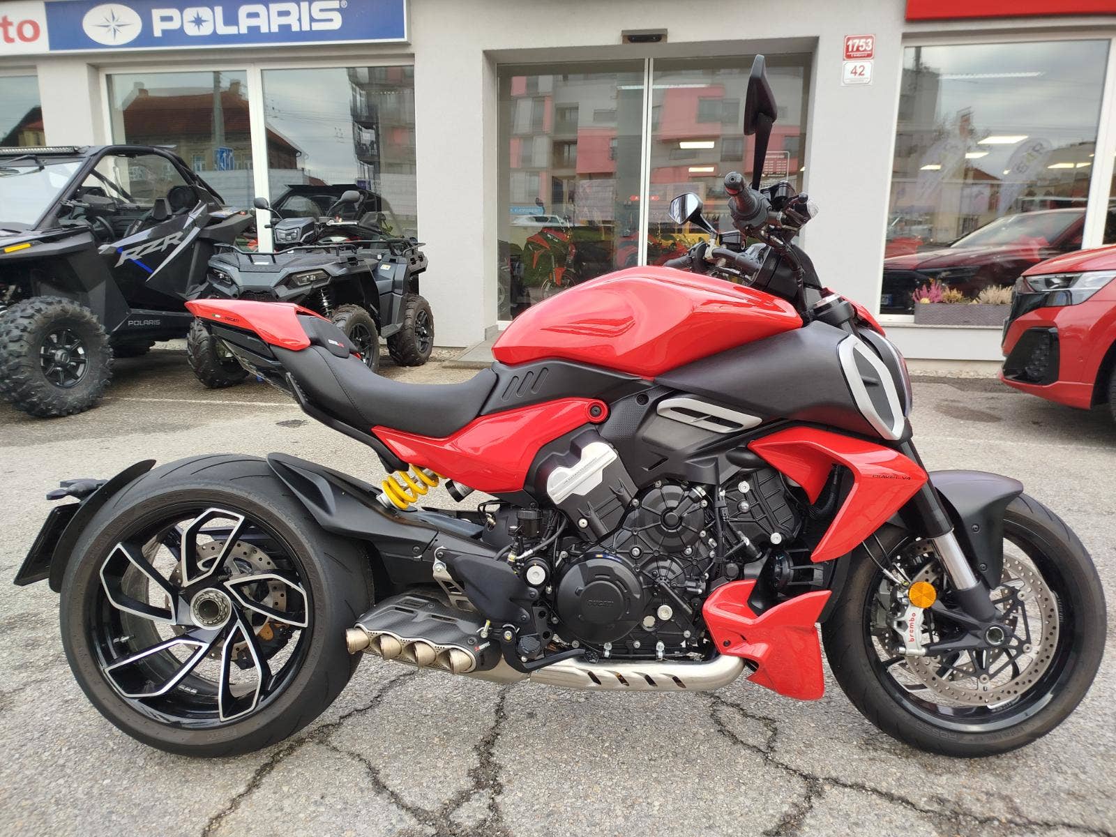 Nabízíme k prodeji naprosto nádhernou Ducati Diavel V4, rok: 2023, najeto: 4 808 km. Motocykl zakoupen jako nový v ČR v autorizovaném dealerství Ducati. 2x klíče, elektronická servisní kniha, uživatelský manuál. Pouze garanční servis v autorizovaném prostředí. V ceně motocyklu originální laděný výfuk Akrapovič s pořizovací cenou přesahující 160.000,– Kč, tankpad nádrže. Úžasný zvuk, nárůst výkonu, snížení váhy. Motocykl v krásném nepoškozeném stavu. K motorce samozřejmě původní originální výfuk a montážní stojan.
