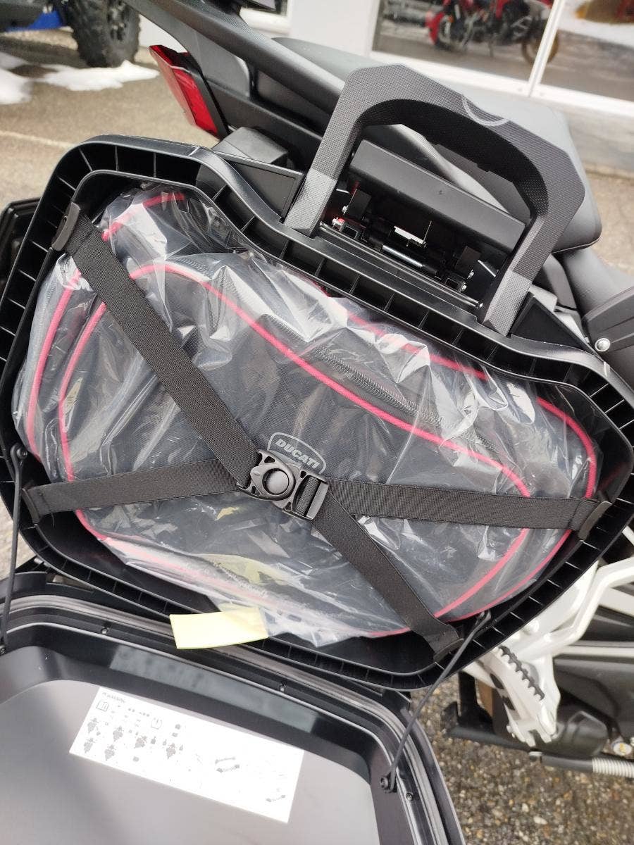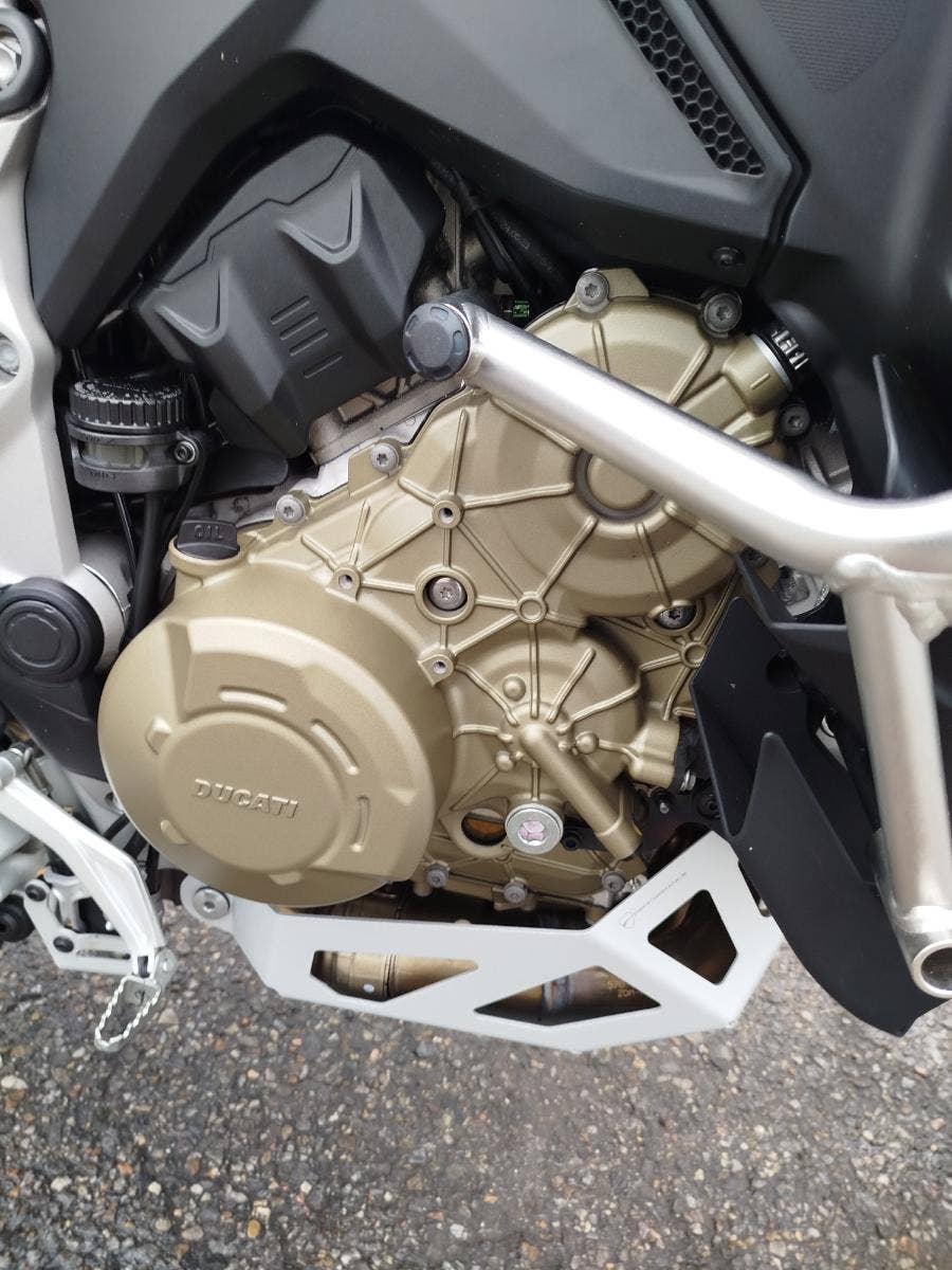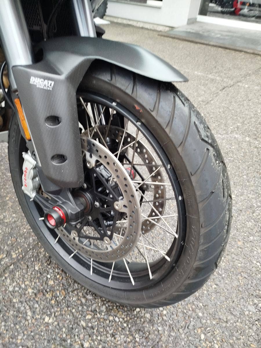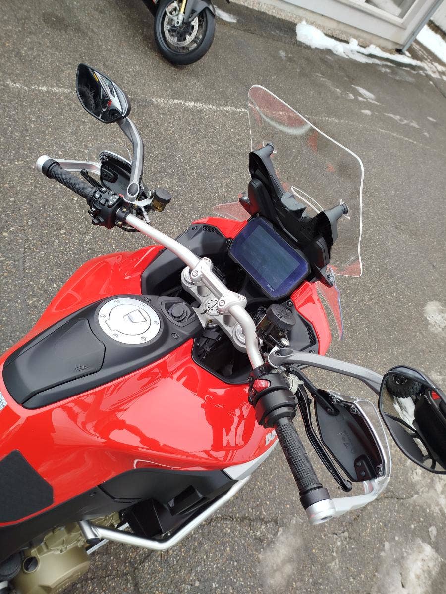 Nabízíme k prodeji prakticky novou Ducati Multistrada V4S ve verzi Full z roku 2022 a nájezdem pouhých: 3 677 km. Motorka zakoupena jako nová v ČR v autorizovaném dealerství Ducati. Pouze jeden majitel, 2x klíče, uživatelský manuál, elektronický výpis ze servisní knihy, stále v tovární záruce. Pravidelný garanční servis pouze v autorizovaném dealerství Ducati, rádi doložíme. Nyní čerstvě po garanční prohlídce u nás rovněž v autorizovaném prostřední. Motorka 100% připravená na jaro. Totálně nabitá výbava čítající: samozřejmě elektronický podvozek, drátěná kola, přední + zadní radar včetně hlídaní mrtvých úhlů, sada bočních kufrů včetně vnitřních tašek, sadu horního kufru, handsfree víčko nádrže, hlavní stojan, vyhřívané rukojeti, vyhřívané obě sedadla, mřížka olejového chladiče, slidery osy kol, boční tankpad nádrže, kryt pod motorem, padací rám, mlhovky, kryty rukojetí, karbonový přední blatník, koncovka Akrapovič. Vše v perfektním stavu. Boční kufry jsou úplně nové nejeté stejně tak tašky uvnitř. Nádherná prakticky nová motorka s českým původem a nadstandardní výbavou za celkovou exkluzivní cenu.