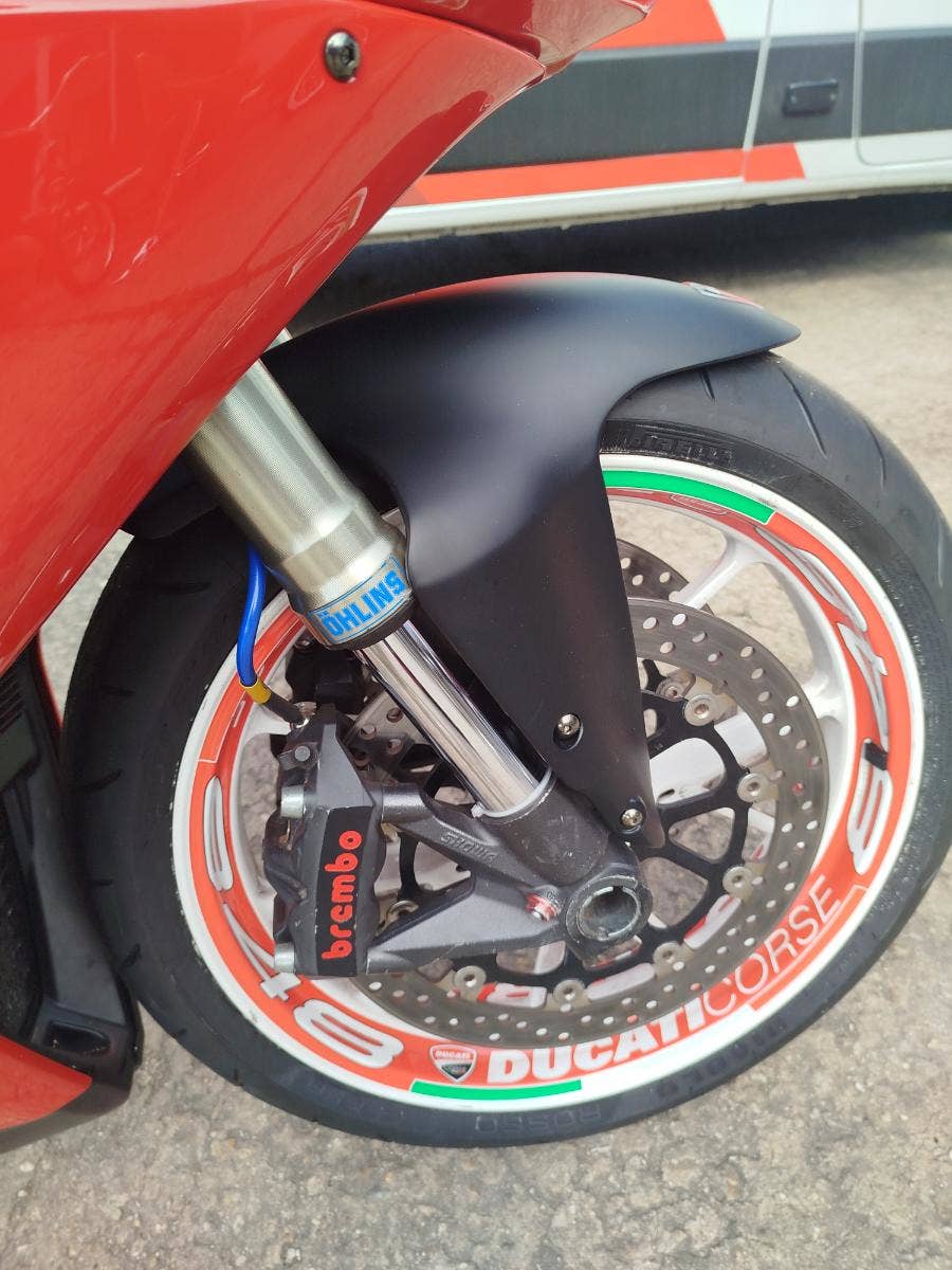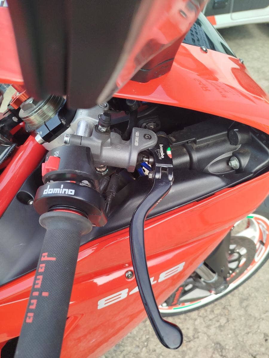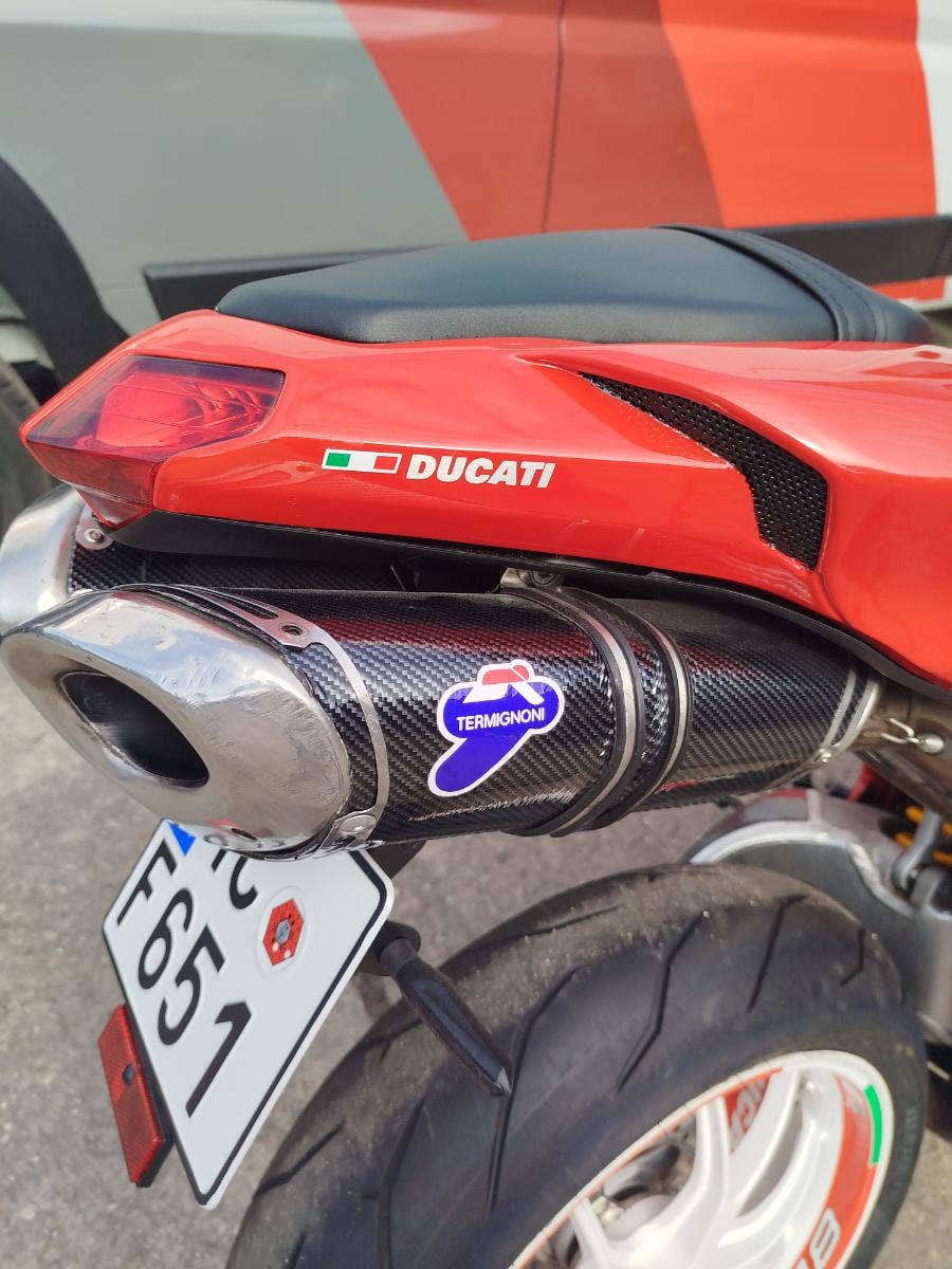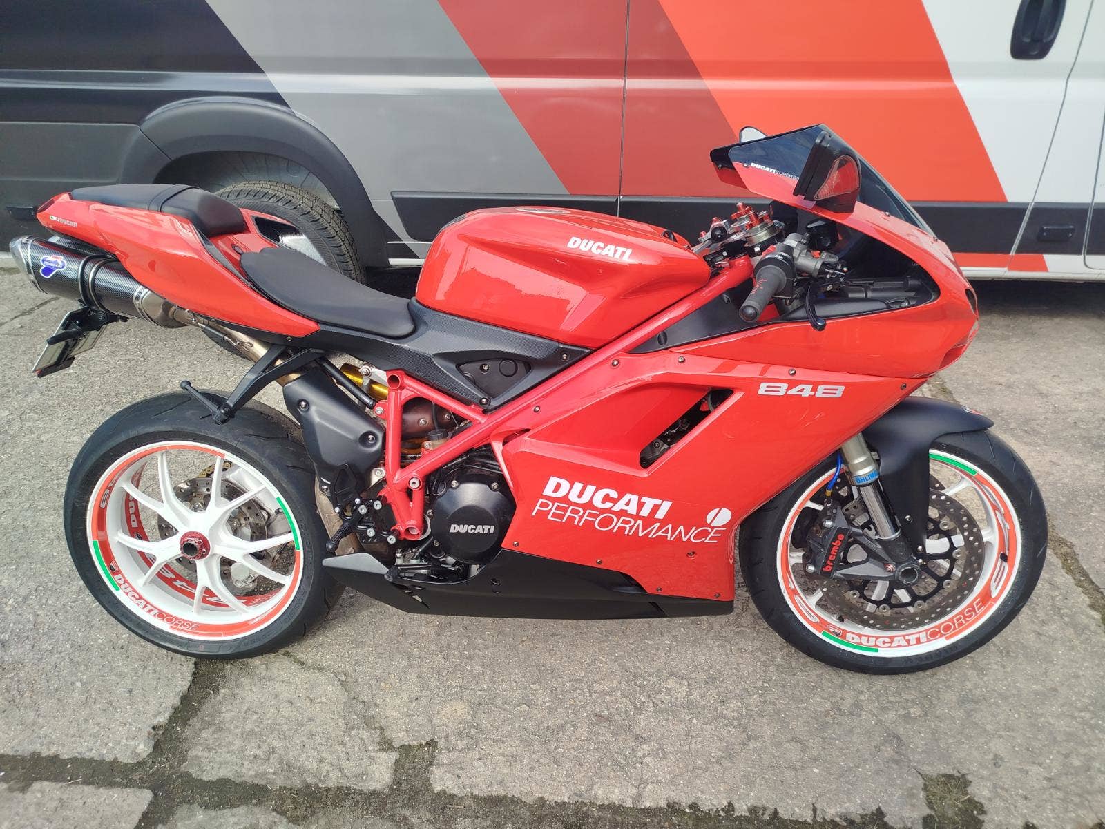 Nabízíme k prodeji motocykl Ducati 848 z roku 2010 a nájezdem: 39 690 km. Motorka zakoupena jako nová v ČR. K motorce jeden klíč a bohatá výbava čítající: kompletní laděné výfuky Termignoni s úžasným zvukem, ukazatel zařazené rychlosti, stavitelné přepákování, quikshifter, velká přední radiální Brembo racing pumpa, pancířové hadice, tlumič řízení, OHLINS zadní tlumič, karbonové doplňky, CNC doplňky, nádobky na kapaliny, růžice rozety a další…